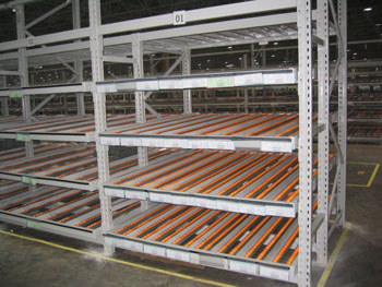 CF流利式货架系统(也称之谓滑移式货架),是将货物置于滚轮上,利用一边通道存货,另一边通道取货。料架朝出货方向向下倾斜,货物在重力作用下向下滑动。可实现先进先出,并可实现一次补货,多次拣货。流利架存储效率高。适合装配线、拣货、包装、和理货区的存贮运作。 流利架广泛应用于配送中心、装配车间以及出货频率较高的仓库。 流利架上的常用容器有周转箱,零件盒及纸箱。周转箱和零件盒两种标准容器中,以周转箱更常使用。故在制定流利架标准规格时,以可堆式周转箱为参照。